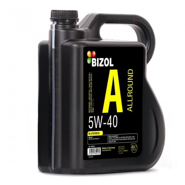 BIZOL Allround 5W-40 sintetinė variklinė lengvųjų automobilių alyva sukurta šiuolaikiniams populiariausių gamintojų (BMW, MB, Opel, VW, AUDI, SEAT, SKODA ir kt.) varikliams.